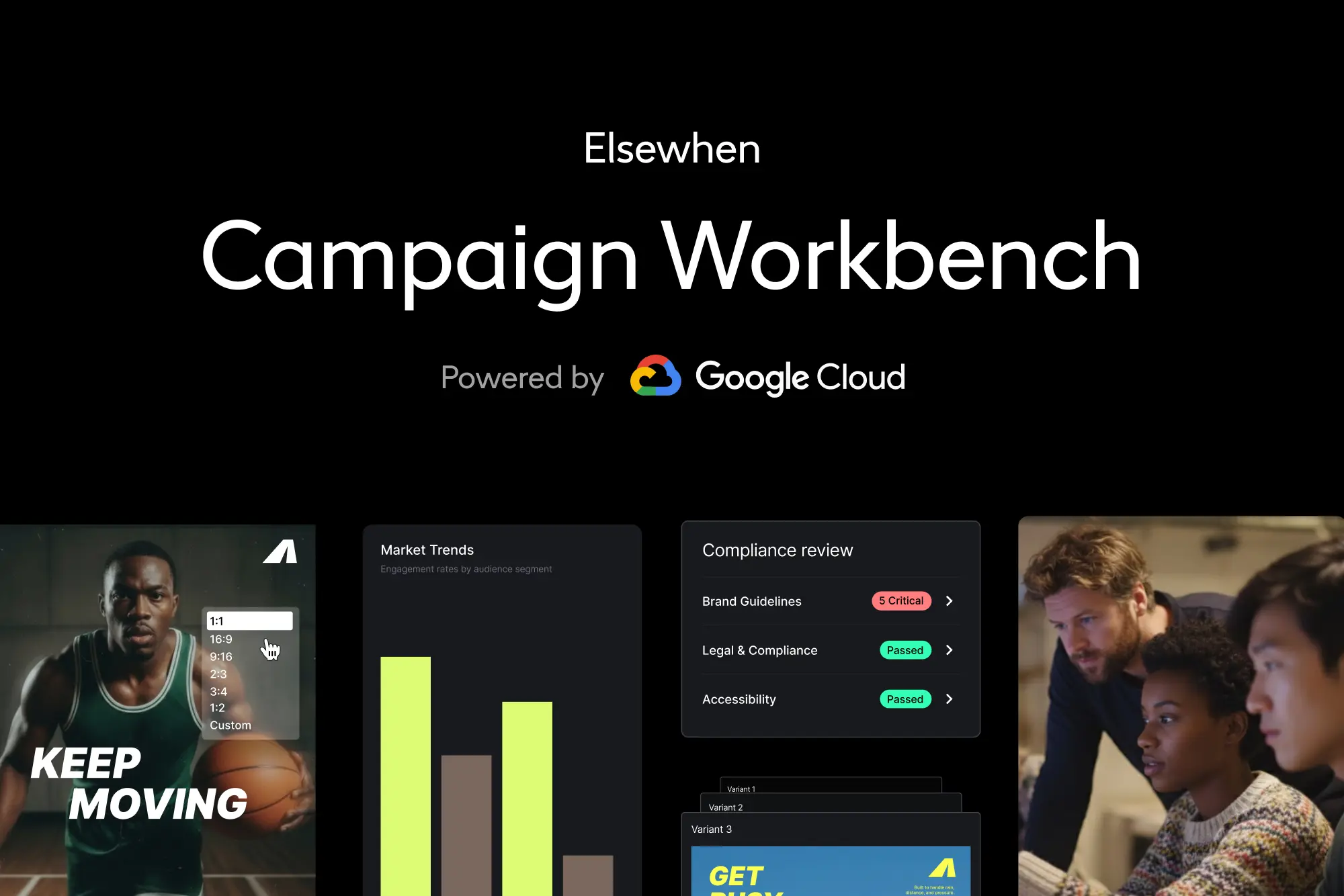Campaign Workbench is Elsewhen's AI marketing platform, built on Vertex AI. It connects your creative, data and distribution workflows so they share the same intelligence.